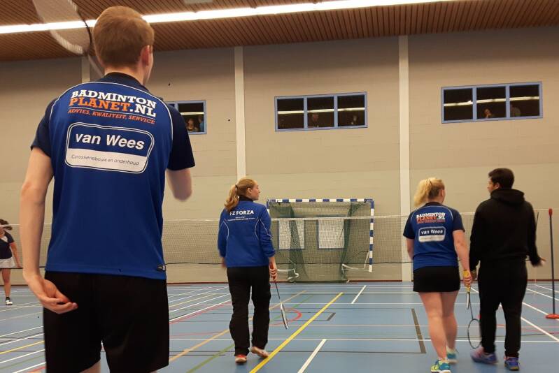 We begonnen uiteraard met de dubbels, echter, ook al stonden de dames te springen om te beginnen, ze moesten even wachten want we hadden een wisselbaan. De herendubbel van Thye/Andreas werd na een uiterst spannende 3 setter helaas verloren. De dames Sylvia/Lotte konden na een lastige eerste set, de wedstrijd overtuigend binnenhalen. De punten zijn verdeeld en nu is het aan de singles, waar we vaak goed uit de voeten komen. Echter… Beide eerste singles vielen prooi aan Amersfoort. Sylvia en Andreas verloren hun pot in een spannende 3-setter. De beurt was nu aan Timo, welke op een vrije baan gespeeld mocht worden, achter ons. Deze werd helaas in 2 verloren, waarbij de tegenstander verschrikkelijk scherp speelde en Timo niet helemaal in lekkere doen was. Lotte liet ons zien hoe het moest. Ze liet de tegenstandster alle hoeken van de baan zien en wist overtuigend in 2 sets te winnen. Op dit moment staan we 2-4 achter. De gemengddubbels werden tegelijk gespeeld. Thye/Lotte wonnen netjes in een degelijke pot in 2 sets. En Timo/Sylvia konden de wedstrijd net niet keren en verloren deze in 2.